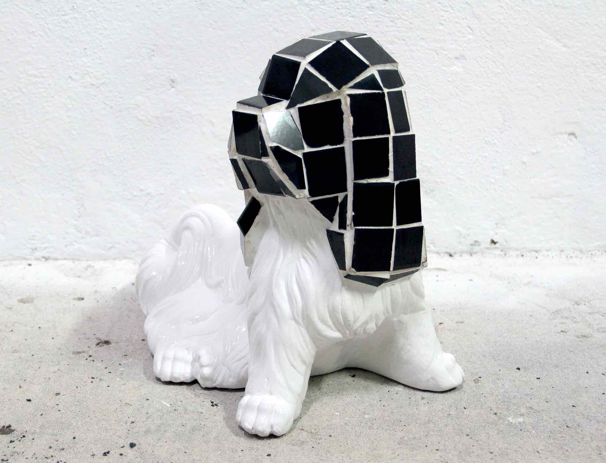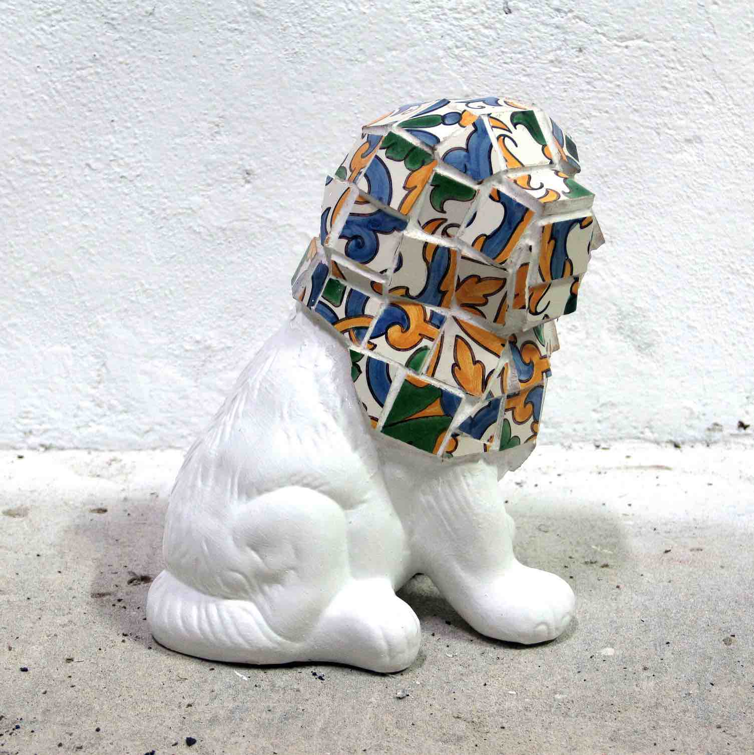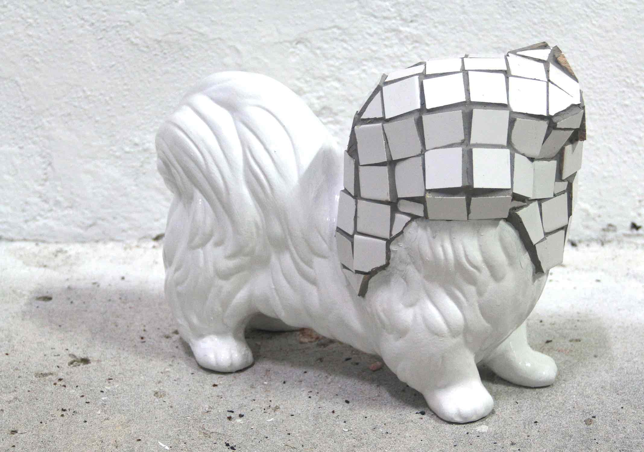 Ceramic dog, tiles and glue